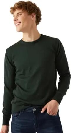 Herren Basic Strickpullover aus Baumwolle, 36296 - Dark Tree Green Melange, L