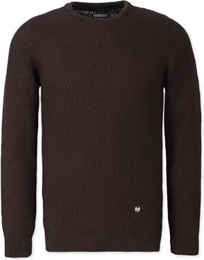 Herren Strickpullover Grid Rundhals Langarm aus Bio-Baumwolle, Chestnut, Gr. XXL