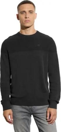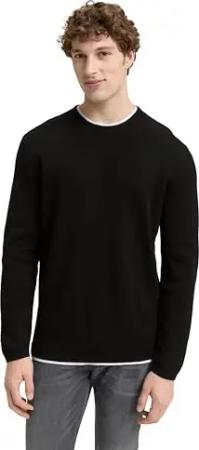 Strickpullover Herren Basic Business Rundhalspullover Crew Neck Langarm Strick Pulli Rundhals-Ausschnitt für Männer 383, Farbe:Schwarz, Größe:L