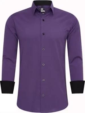 Business-Hemd Herren Kontrast Hemd Hochzeit-Hemd Slim Fit Hemden Stretchhemd S - 4XL G44, Farbe:Lila, Größe:M