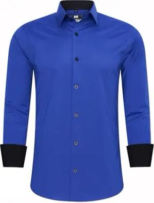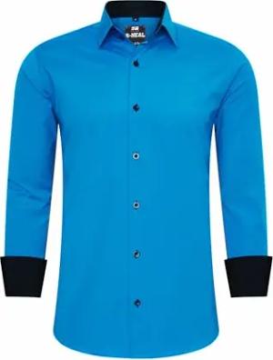 Business-Hemd Herren Kontrast Hemd Hochzeit-Hemd Slim Fit Hemden Stretchhemd S - 4XL G44, Farbe:Sax, Größe:M