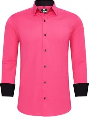 Business-Hemd Herren Kontrast Hemd Hochzeit-Hemd Slim Fit Hemden Stretchhemd S - 4XL G44, Farbe:Pink, Größe:M