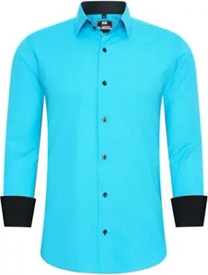 Business-Hemd Herren Kontrast Hemd Hochzeit-Hemd Slim Fit Hemden Stretchhemd S - 4XL G44, Farbe:Türkis, Größe:M