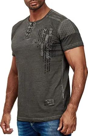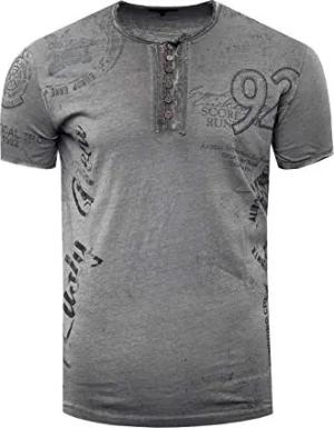T-Shirt Herren Seitliche Knopfleiste Oxid Washed mit Individuellem Front Print Stretch Streetwear Freizeit-Shirt 194, Farbe:Anthrazit, Größe:3XL