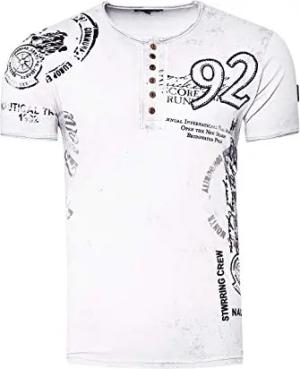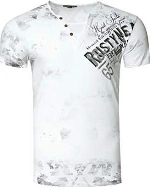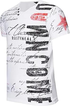 Rusty Neal Herren T-Shirt Rundhals Knopfleiste Tee Shirt Kurzarm Regular Fit Stretch 100% Baumwolle S M L XL XXL 3XL 241, Farbe:Weiß, Größe:M