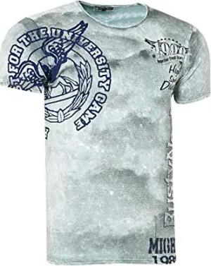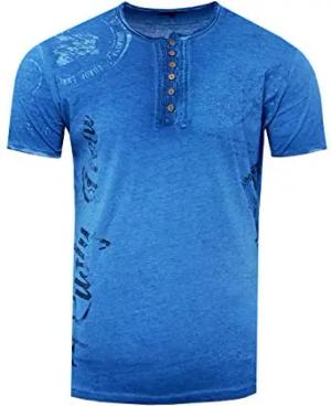T-Shirt Herren Seitliche Knopfleiste Oxid Washed mit Individuellem Front Print Stretch Streetwear Freizeit-Shirt 194, Farbe:Marine, Größe:XL