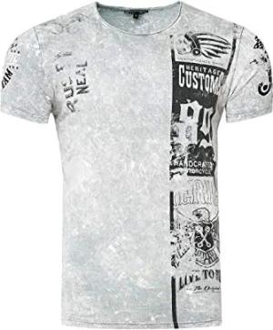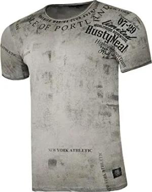 Rusty Neal Herren T-Shirt Rundhals All Over Print Tee Shirt Kurzarm Regular Fit Stretch 100% Baumwolle S M L XL XXL 3XL 234, Farbe:Grau, Größe:XL