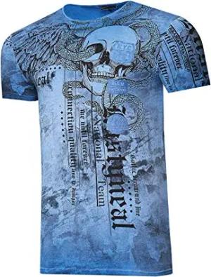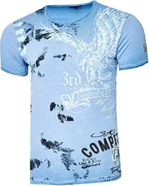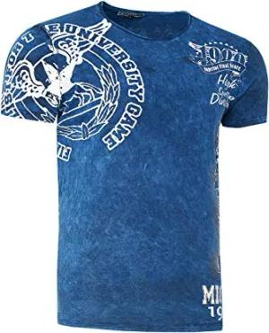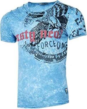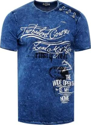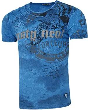 Rusty Neal Herren T-Shirt Rundhals Printed Tee Shirt Kurzarm Regular Fit Stretch 100% Baumwolle S M L XL XXL 3XL 228, Farbe:Blau, Größe:2XL