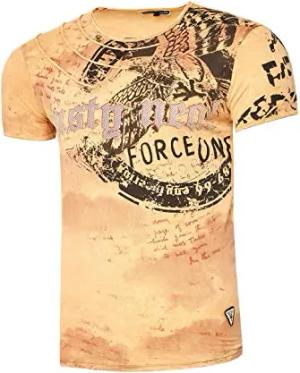 Rusty Neal Herren T-Shirt Rundhals Color Print Tee Shirt Kurzarm Regular Fit Stretch 100% Baumwolle S M L XL XXL 3XL 232, Farbe:Camel, Größe:3XL