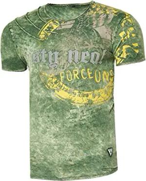 Rusty Neal Herren T-Shirt Rundhals Printed Tee Shirt Kurzarm Regular Fit Stretch 100% Baumwolle S M L XL XXL 3XL 228, Farbe:Khaki, Größe:M