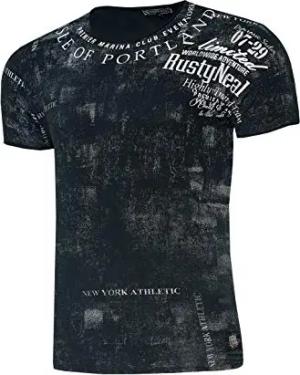 Rusty Neal Herren T-Shirt Rundhals Printed Tee Shirt Kurzarm Regular Fit Stretch 100% Baumwolle S M L XL XXL 3XL 244, Farbe:Schwarz, Größe:S