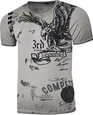 Rusty Neal Herren T-Shirt Rundhals USA Adler Tee Shirt Kurzarm Regular Fit Stretch 100% Baumwolle S M L XL XXL 3XL 235, Farbe:Anthrazit, Größe:S