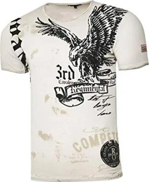 Rusty Neal Herren T-Shirt Rundhals USA Adler Tee Shirt Kurzarm Regular Fit Stretch 100% Baumwolle S M L XL XXL 3XL 235, Farbe:Beige, Größe:S