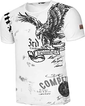 Rusty Neal Herren T-Shirt Rundhals USA Adler Tee Shirt Kurzarm Regular Fit Stretch 100% Baumwolle S M L XL XXL 3XL 235, Farbe:Weiß, Größe:2XL