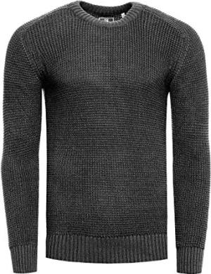 Strickpullover Herren Basic Business Rundhalspullover Crew Neck Langarm Strick Pulli Rundhals-Ausschnitt für Männer 383, Farbe:Anthrazit, Größe:L
