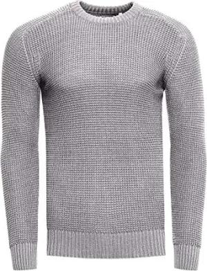Strickpullover Herren Basic Business Rundhalspullover Crew Neck Langarm Strick Pulli Rundhals-Ausschnitt für Männer 383, Farbe:Grau, Größe:L