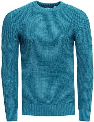 Strickpullover Herren Basic Business Rundhalspullover Crew Neck Langarm Strick Pulli Rundhals-Ausschnitt für Männer 383, Farbe:Petrol, Größe:3XL