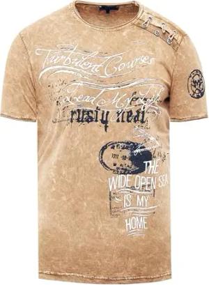 Rusty Neal Herren T-Shirt Rundhals Printed Tee Shirt Kurzarm Regular Fit Stretch 100% Baumwolle S M L XL XXL 3XL 228, Farbe:Camel, Größe:M