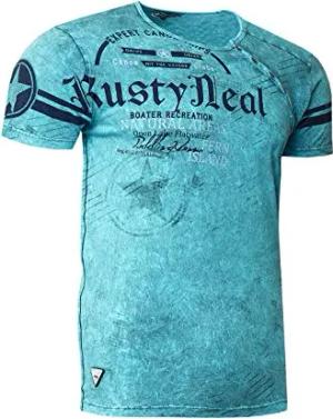 T-Shirt Regular Original Rusty Neal College Shirt Knopfleiste Print Verwaschen Regular 245, Farbe:Petrol, Größe:L