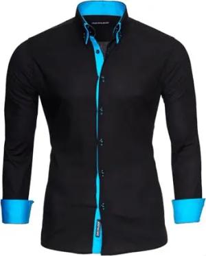 Hemd Herren bügelleicht Slim Fit Freizeithemd Hemden Business Männer Kontrast Langarmhemd RS-7050 Schwarz Türkis Gr M