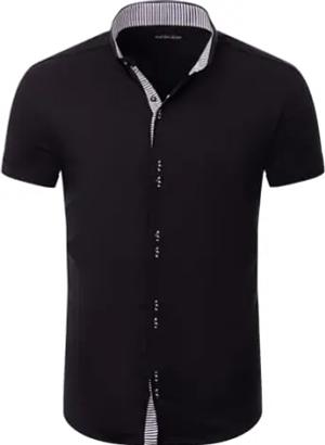 Hemd Herren Kurzarm Slim Fit | Freizeithemden für Sommer | Stretch Hemden mit optimalen Komfort | Elegantes Business Männer Hemd RS-7025 Schwarz S