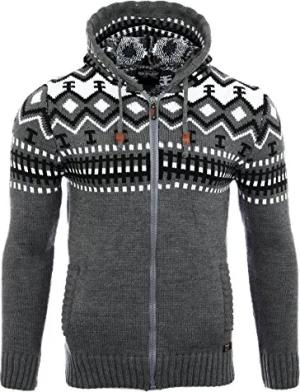Herren Grobstrick Norweger Pullover Winter Strickjacke Kapuzenpullover RS-3104 (XL, Anthrazit)