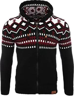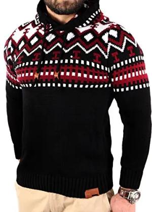 Herren Grobstrick Pullover Norweger Winter Kapuzenpullover RS-3013 (M, Schwarz-Rot)