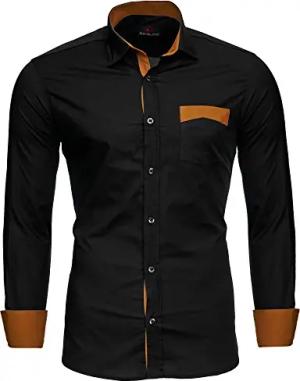 Herren Hemden bügelfreies Slim Fit Freizeithemd Männer Hemd Businesshemd zweifarbig 2 Kragen RS-7050 Orange Schwarz Gr L