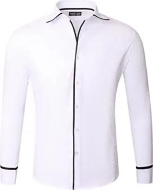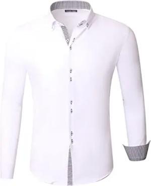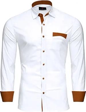 Herren Hemd Slim Fit Bügelfrei Businesshemd Oberhemd Hochzeit Männer Hemden Anzug Uni Langarm Neu RS-7002 Weiß L