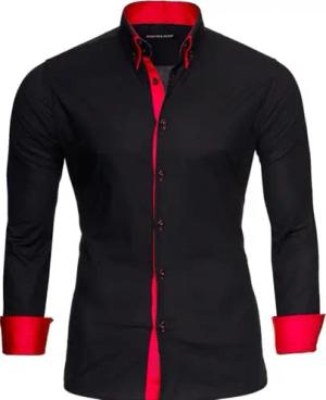 Herren Hemd Langarm Männer Hemden bügelfrei figurbetont Freizeithemd Business 2 Knopf Doppelkragen RS-7050 Schwarz Rot Gr M