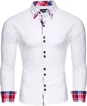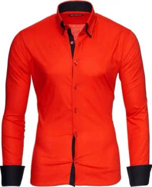 Herren Hemd Männer Hemden Slim Fit bügelfrei Freizeit Business Langarm 2 Knopf 2 Kragen RS-7050 Rot Schwarz Gr XXL
