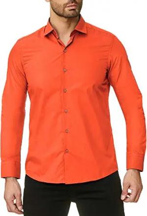 Herren Hemd Slim Fit Bügelfrei Freizeit Disco Kellner Hochzeit Männer Hemden Anzug Uni Langarm RS-7002 Orange 2XL