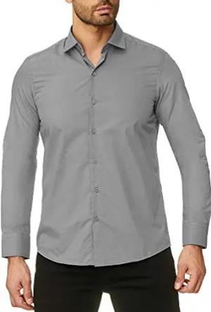 Herren Hemd Slim Fit Bügelfrei Freizeit Disco Kellner Hochzeit Männer Hemden Anzug Uni Langarm Neu RS-7002 grau S