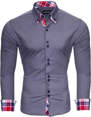 Herren Hemd Slim Fit Bügelfrei Freizeithemd Businesshemd Hochzeit Männer Hemden Anzug Uni Langarm RS-7002 grau XXL
