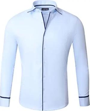 Herren Hemd Slim Fit Bügelfrei Businesshemd Oberhemd Hochzeit Männer Hemden Anzug Uni Langarm Neu RS-7002 Hellblau L