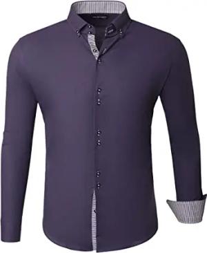 Herren Hemd Slim Fit Bügelfrei Freizeithemd Herrenhemd Hochzeit Männer Hemden Anzug Uni Langarm Neu RS-7002 Blau XL