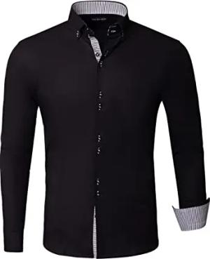 Herren Hemd Slim Fit Bügelfrei Freizeit Disco Kellner Hochzeit Männer Hemden Anzug Uni Langarm Neu RS-7002 Schwarz S