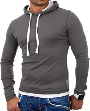 Herren Pullover Kapuzenpullover Sweatshirt Sweater Pulli Hoodie RS-1003 Weiß-Grau L