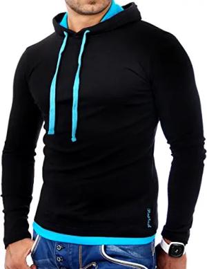 Herren Pullover Kapuzenpullover Sweatshirt Sweater Pulli Hoodie RS-1003 Schwarz-Türkis M