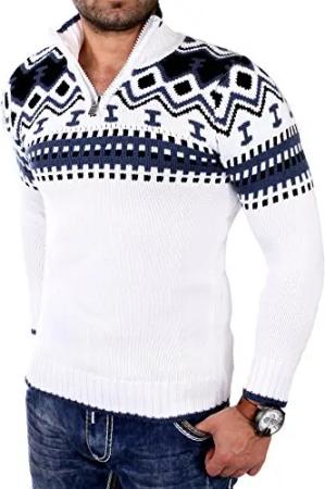 Herren Strickpullover Crewneck Zipper Norweger Pullover RS-3110 Weiß S