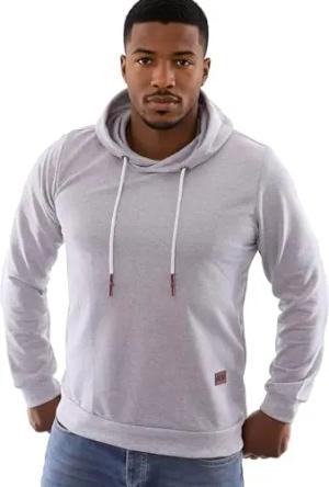 Herren Pullover Kapuzenpullover Sweatshirt Sweater Pulli Hoodie RS-1003 Weiß-Grau M