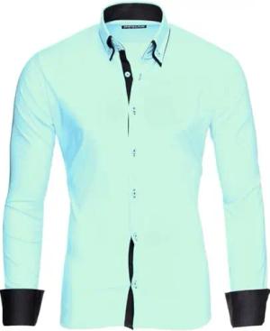Männer Hemd bügelleicht Slim Fit Freizeit-Hemden Business Herren Kontrast buntes Langarmhemd RS-7050 Mint Schwarz Gr XL