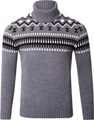 Herren Strickpullover Rundhals Norwegerpullover Muster RS-18003 Grau S