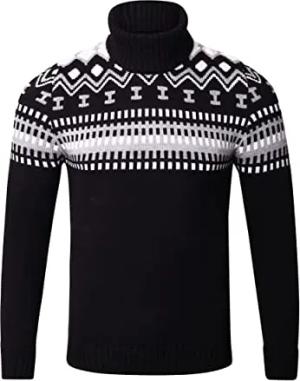 Rollkragenpullover Herren Pullover Rolli Grobstrick Norweger Rollkragenpulli Männer Winterpullover RS-3014 Schwarz 2XL