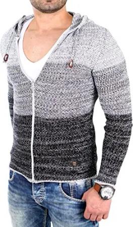 Strickjacke Herren Colorblock Kapuzen Cardigan Jacke RS-3107 Schwarz S