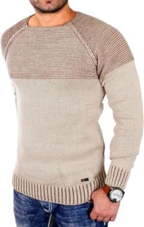 Strickpullover Herren Two Tone Rundhals Pullover Grobstrick RS-16081 Camel XL