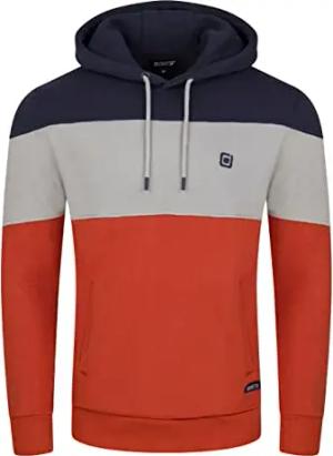 Herren Kapuzenpullover RIVJamie Hoodie Sweatshirt Pullover Kapuze Kängurutaschen Regular Fit Farbblock Baumwolle XXL, Größe:XXL, Farbe:Navy-Dawn Grey-Rusty Ochre Red