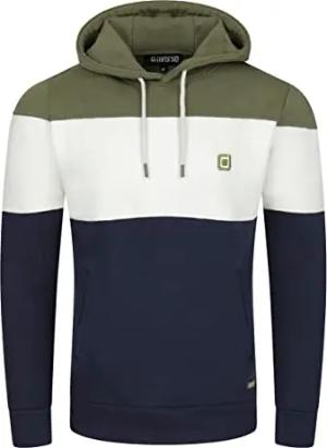 Herren Kapuzenpullover RIVRemo Hoodie Sweatshirt Pullover Kapuze Kängurutaschen Regular Fit Farbblock Baumwolle XXL, Größe:XXL, Farbe:Ivy Olive-White-Navy