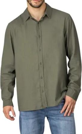 Leinenhemd Hemd Herren RIVFabio Regular Fit Langarm Freizeithemd Sommerhemd Herrenhemd Leinen Oberteile Einfarbig, Größe:S, Farbe:Ivy Olive
