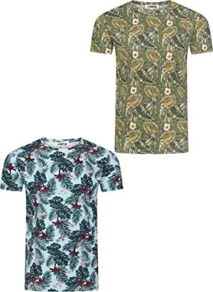 Tshirt Herren 100% Baumwolle Regular Fit RIVBill 2er Pack Set Rundhals Kurzarm Shirt Sommer Hawaii Muster All Over Print, Größe:L, Farbe:Farbmix 1